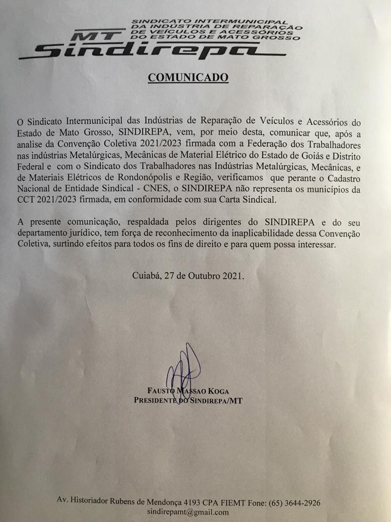 O Sindicato Intermunicipal das Indústrias de Reparação de Veículos e Acessórios do Estado de Mato Grosso, SINDIREPA, vem, por meio... View Article