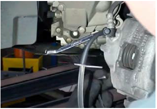 12. Instalar o recipiente para o fluido do freio. Soltar o flexível com a chave estrela.