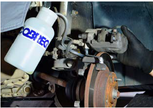 5. Com uma seringa, e com bastante cuidado, uma vez que os fluídos para freios são corrosivos, retirar uma pequena amostra e colocar em um recipiente.