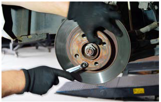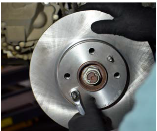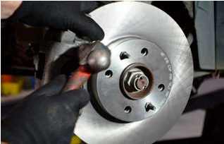 18. Com a chave estrela de 12 mm soltar os guias do disco de freio, que são os parafusos responsáveis por prender o disco no cubo.