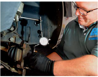 21. Montar o relógio comparador no rolamento para testar a oscilação. No caso do cubo é recomendado uma variação que fique inferior à de 5 centésimos para carros do porte do Fiat Argo. No disco essa variação não deve ser maior do que 10 centésimos.