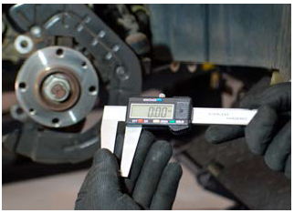 23. Utilizar um paquímetro de ponta seca para medir a espessura do disco de freio, no ponto de maior desgaste, que no caso do Fiat Argo não deve ser inferior a 10,20 mm. Discos abaixo do TH devem ser substituídos.
