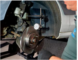 20. Utilizar o relógio comparador. Antes de montar o relógio comparador no disco, limpar com uma lixa fina para tirar a oxidação e depois passar o produto feito especialmente para limpeza do sistema de freio.