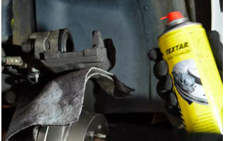 28. Antes de colocar as pinças, realizar a limpeza da pinça e dos pinos. Deste modo, não ficará nenhum resíduo das pastilhas, poeira ou sujeiras. Utilizar o produto Textar Formula XT.