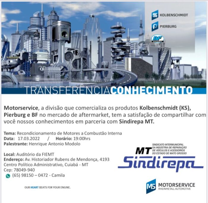 Noticias em GeralPalestra ‘Recondicionamento de motores à combustão interna’ em Cuiabá Por Sindirepa MT 11,mar, 2022